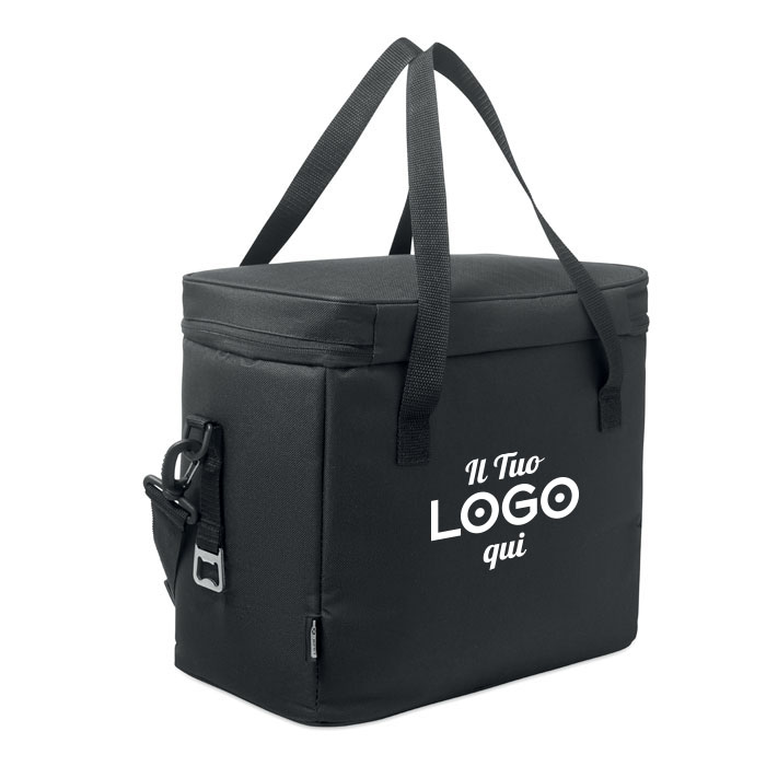 Descrizione: Borsa frigo in poliestere 600D RPET personalizzabile con logo