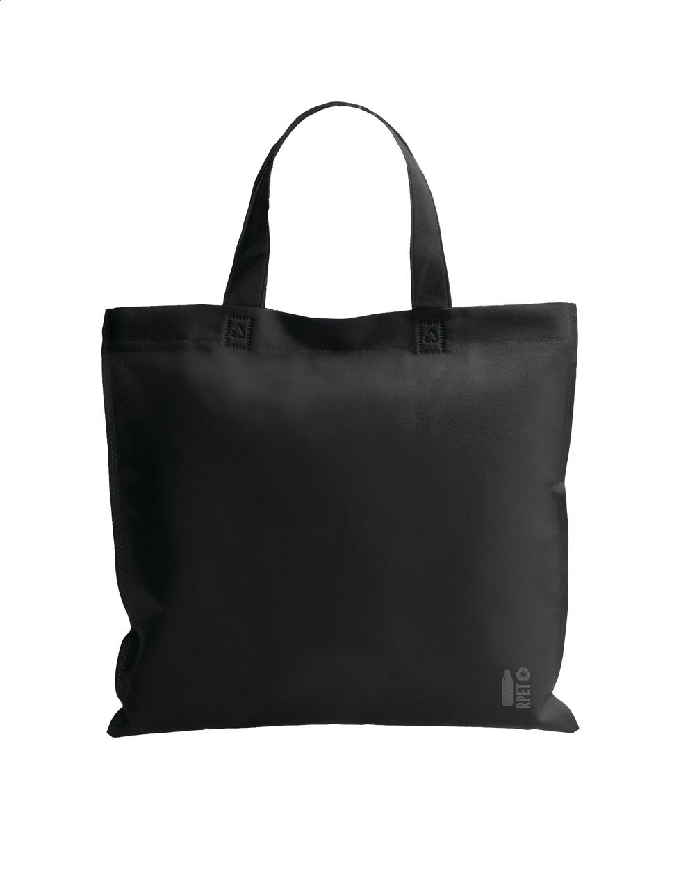 Borsa per la spesa in TNT RPET con manici mediamente lunghi, 70 grammi. Con etichetta RPET.