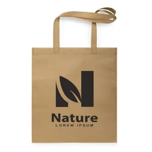 Borsa della linea Natura, realizzata in TNT riciclato da 70g/m2. Prodotta in Europa, con finitura termosaldata, soffietto alla base, manico fustellato rinforzato ed etichetta eco/made in sulla borsa.