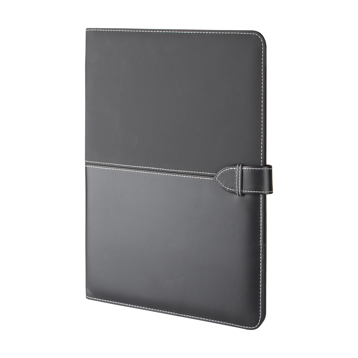 Cartella formato A4 in pelle PU, con blocco da 20 fogli a righe, portapenne e porta biglietti da visita.