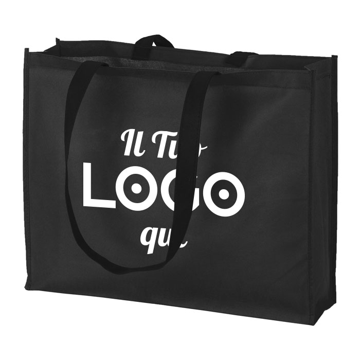 Grande borsa shopper personalizzabile con logo con manici lunghi, in tessuto non tessuto, 90 g/m².