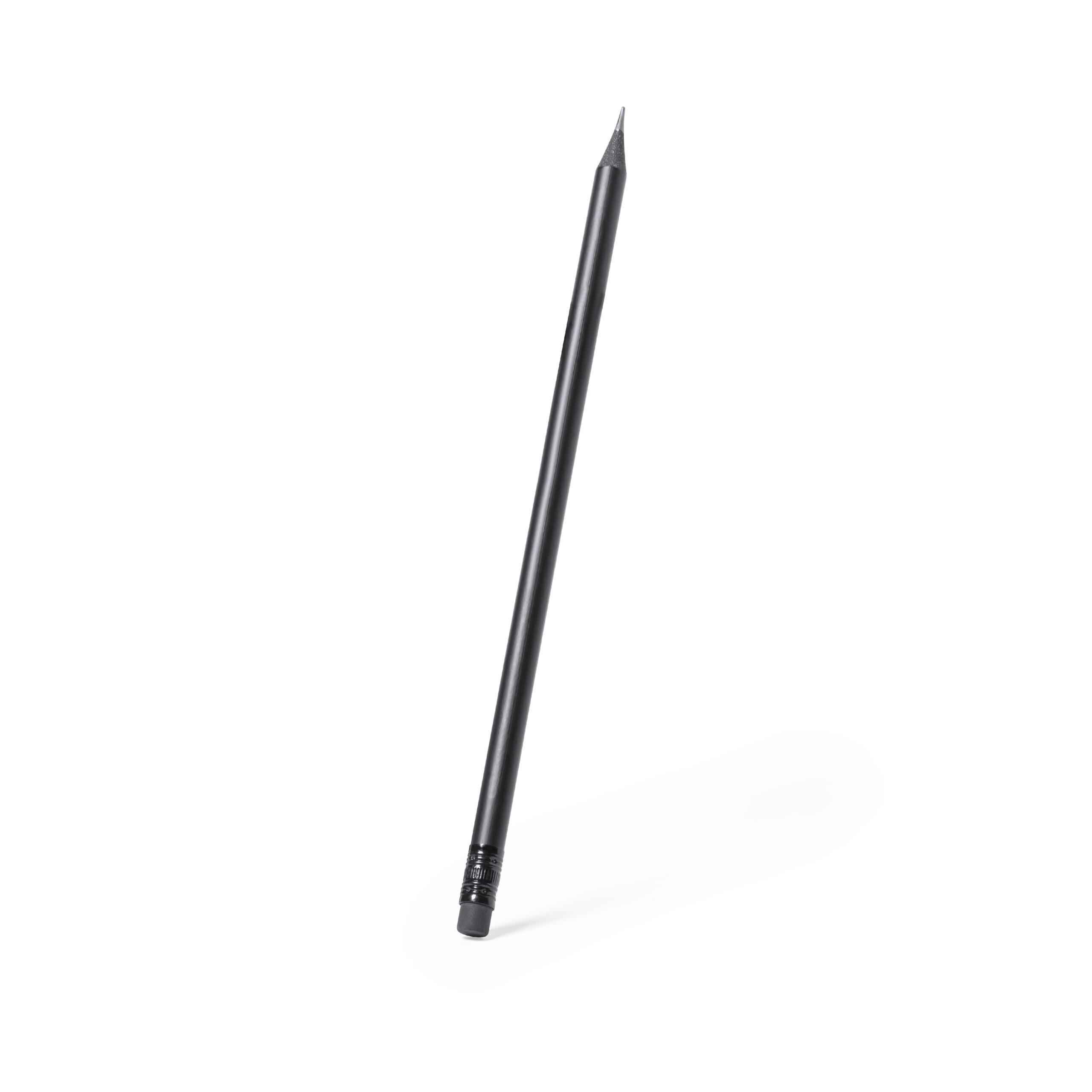 Matita personalizzabile con logo in legno naturale con finitura nera opaca con gomma, mina nera e punta temperata.