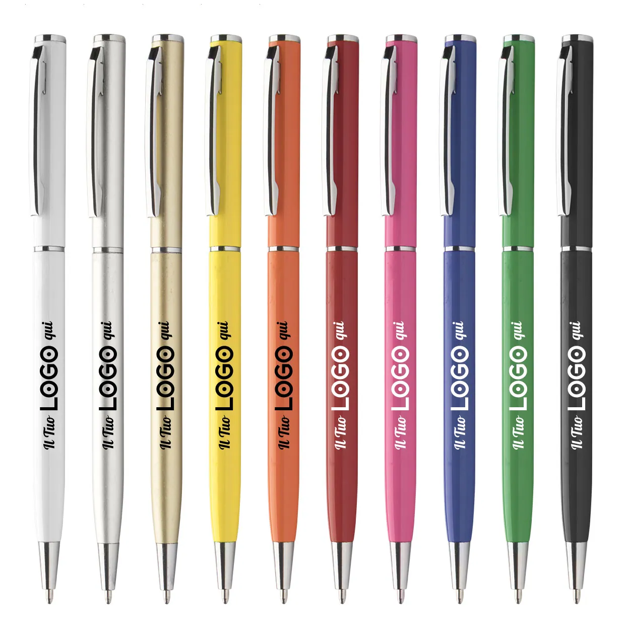 La penna in alluminio riciclato con meccanismo a rotazione è un gadget promozionale elegante, resistente e perfettamente in linea con le esigenze delle aziende che vogliono comunicare qualità e attenzione alla sostenibilità. Questa penna a sfera è realizzata in alluminio riciclato, un materiale che garantisce solidità e leggerezza allo stesso tempo, offrendo una sensazione di robustezza e valore già al primo contatto. L’utilizzo di alluminio riciclato consente di ridurre l’impatto ambientale rispetto ai materiali tradizionali, trasformando la penna in un oggetto che trasmette un messaggio positivo e responsabile, sempre più apprezzato da clienti, partner e collaboratori. Il meccanismo di apertura a rotazione è pratico e affidabile, pensato per un utilizzo quotidiano semplice e immediato, senza cappucci da perdere o componenti fragili, mentre le parti cromate aggiungono un tocco di eleganza che rende la penna adatta sia a contesti informali sia a situazioni professionali come riunioni, appuntamenti commerciali e eventi aziendali. L’inchiostro blu garantisce una scrittura fluida e scorrevole, ideale per appunti, firme e utilizzo in ufficio, assicurando un tratto preciso e uniforme in ogni occasione. Dal punto di vista promozionale, la penna in alluminio riciclato con meccanismo a rotazione è uno dei gadget più efficaci perché unisce durata nel tempo e visibilità costante del brand. Essendo un oggetto utilizzato ogni giorno, mantiene il logo aziendale sempre sotto gli occhi di chi lo riceve, trasformando ogni momento di scrittura in un’opportunità di comunicazione. La superficie del fusto si presta perfettamente alla personalizzazione con logo o messaggi aziendali, offrendo una resa elegante e professionale che valorizza l’identità visiva del brand. Questa penna è ideale per fiere, congressi, eventi corporate, welcome kit per nuovi collaboratori, regali aziendali e campagne promozionali orientate alla sostenibilità e alla qualità, perché rappresenta un equilibrio perfetto tra estetica, funzionalità e costo accessibile. La struttura in alluminio la rende più resistente rispetto alle classiche penne in plastica, aumentando la durata e la percezione di valore del gadget. Leggera e facile da trasportare, può essere distribuita in grandi quantità senza difficoltà logistiche, risultando una scelta versatile per ogni tipo di iniziativa promozionale. Le spedizioni rapide in tutta Italia permettono di ricevere il prodotto in tempi brevi anche quando si lavora con scadenze strette, mentre la bozza grafica gratuita prima dell’ordine consente di visualizzare in anteprima la personalizzazione con il tuo logo e di apportare eventuali modifiche per ottenere un risultato perfetto e coerente con la tua immagine aziendale. Questo processo garantisce trasparenza e sicurezza nella scelta del gadget, aiutandoti a investire in una penna personalizzata capace di accompagnare chi la riceve nella vita quotidiana e di rafforzare nel tempo la presenza del tuo brand in modo concreto e duraturo.