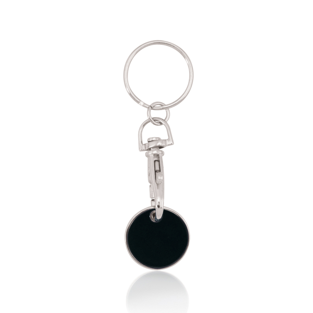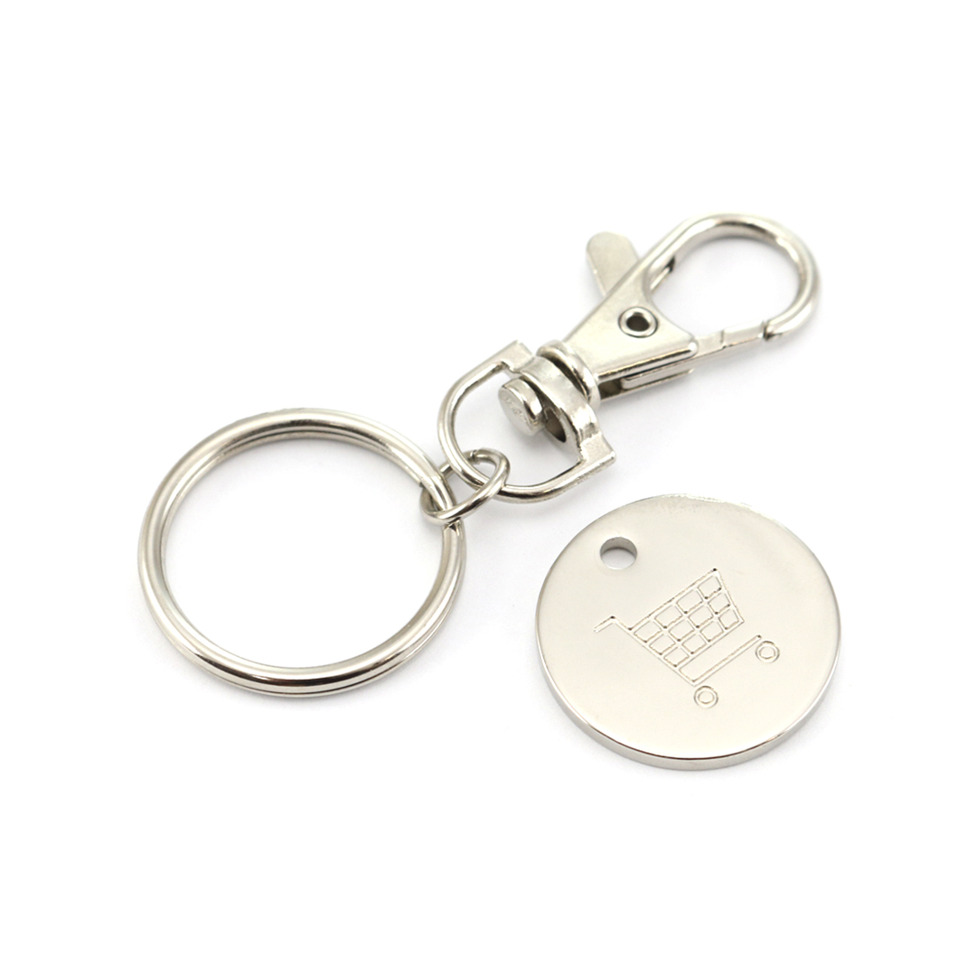 Descrizione: Portachiavi in metallo con moneta per carrello