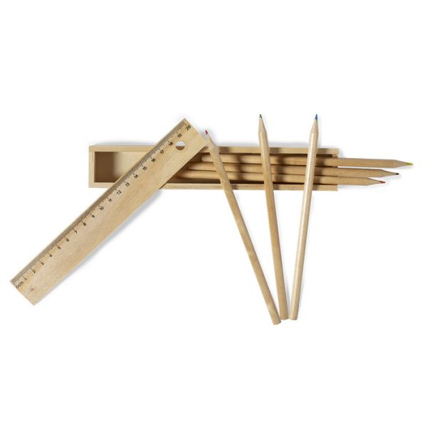 Set di 6 matite con custodia in legno naturale.