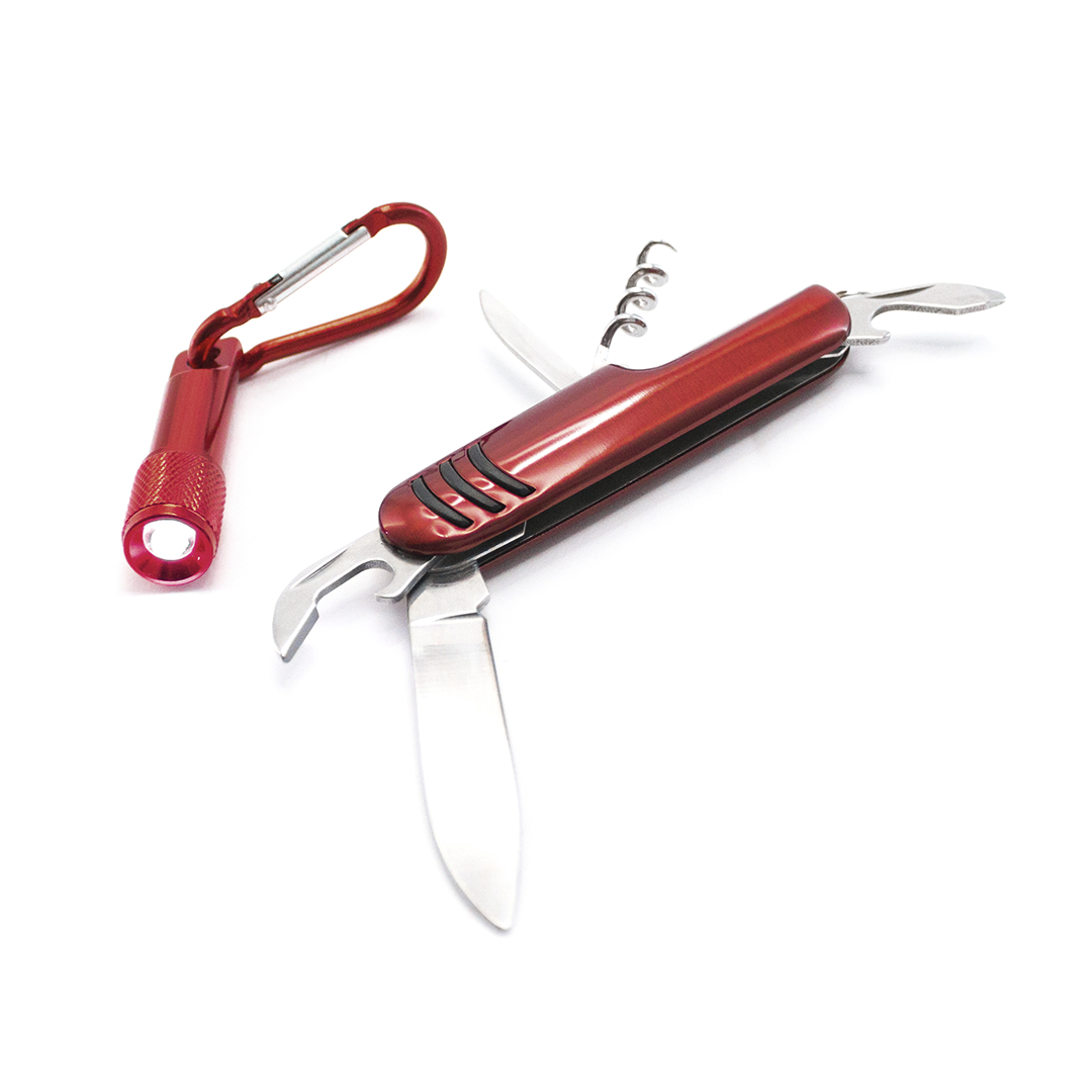 Set coltellino multifunzione e torcia moschettone