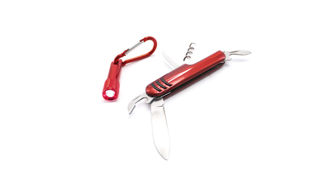 Set coltellino multifunzione e torcia con moschettone: praticità compatta sempre a portata di mano