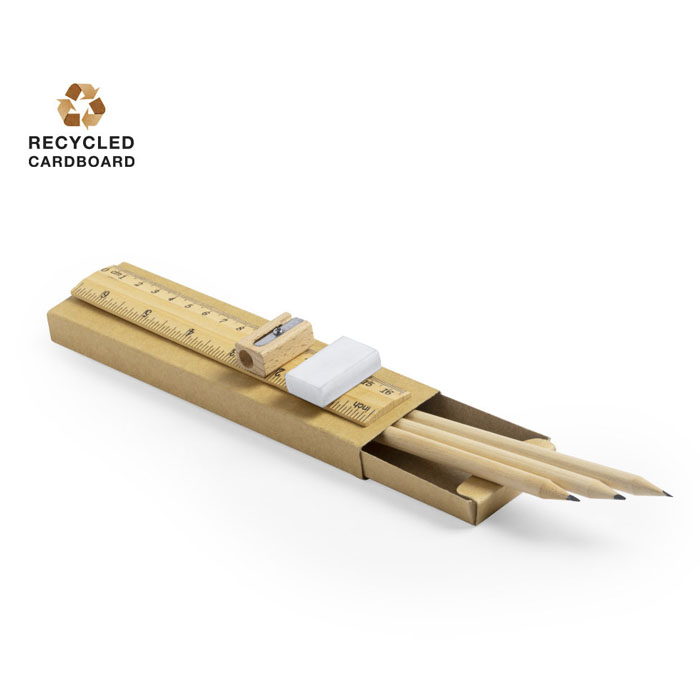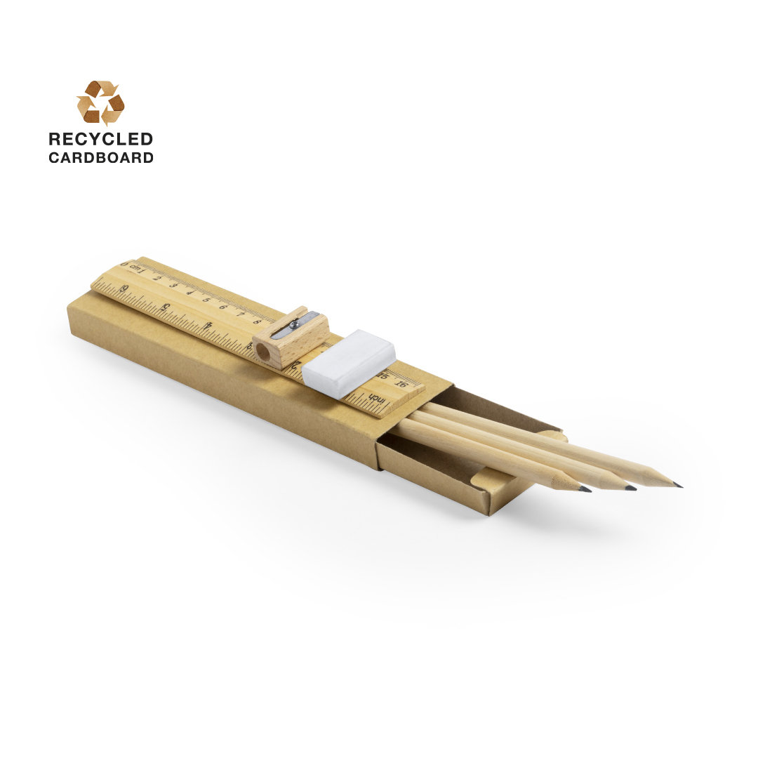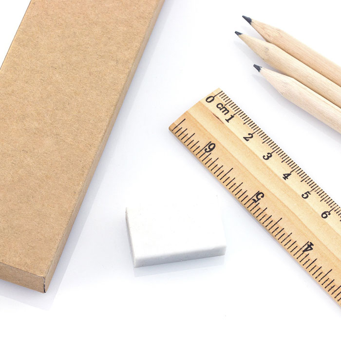 Le matite in legno naturale offrono una scrittura fluida e una presa confortevole. Il righello con doppia misurazione aumenta la versatilità del set, rendendolo adatto anche a contesti tecnici o scolastici.